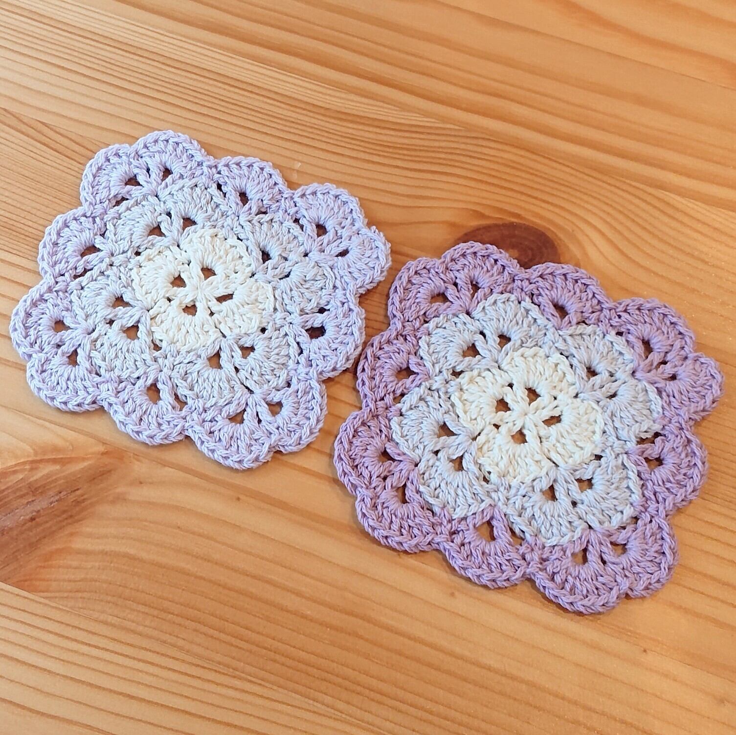 かぎ編みのコースター 2枚セット ~色 ペールアイリス×アロマラベンダー~
