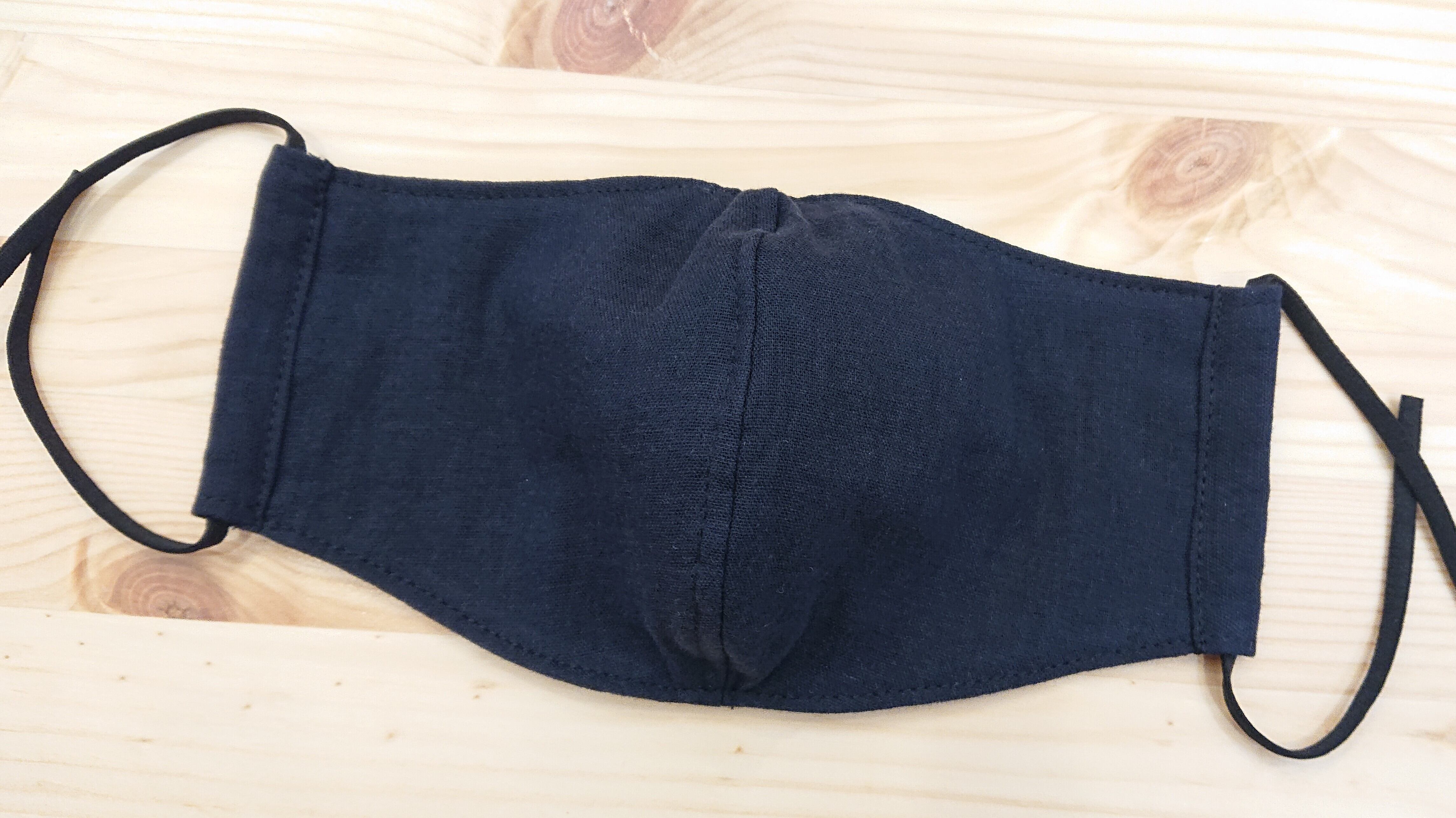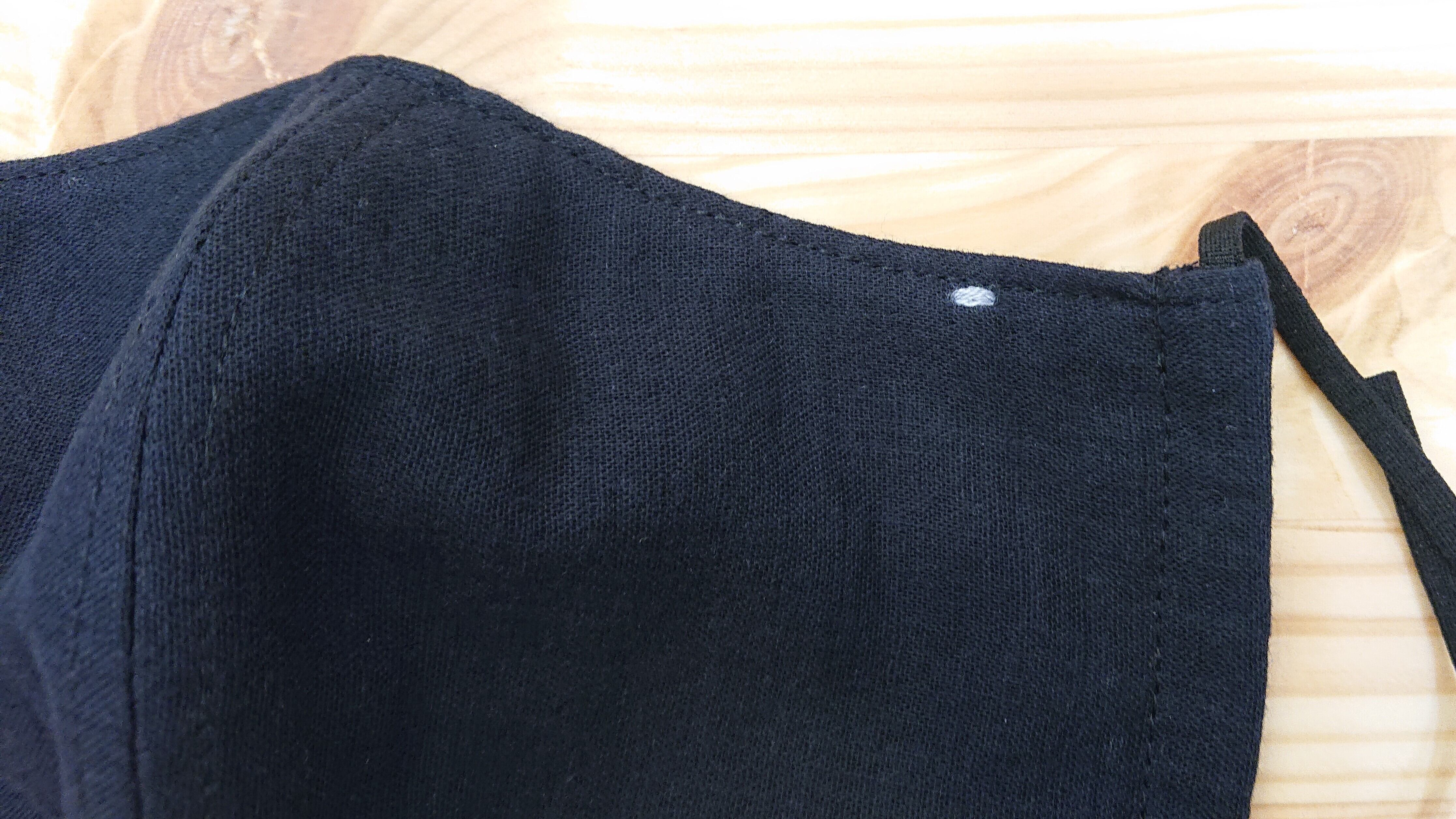 お顔のサイズに合わせて紐を結び、マスクの内側に