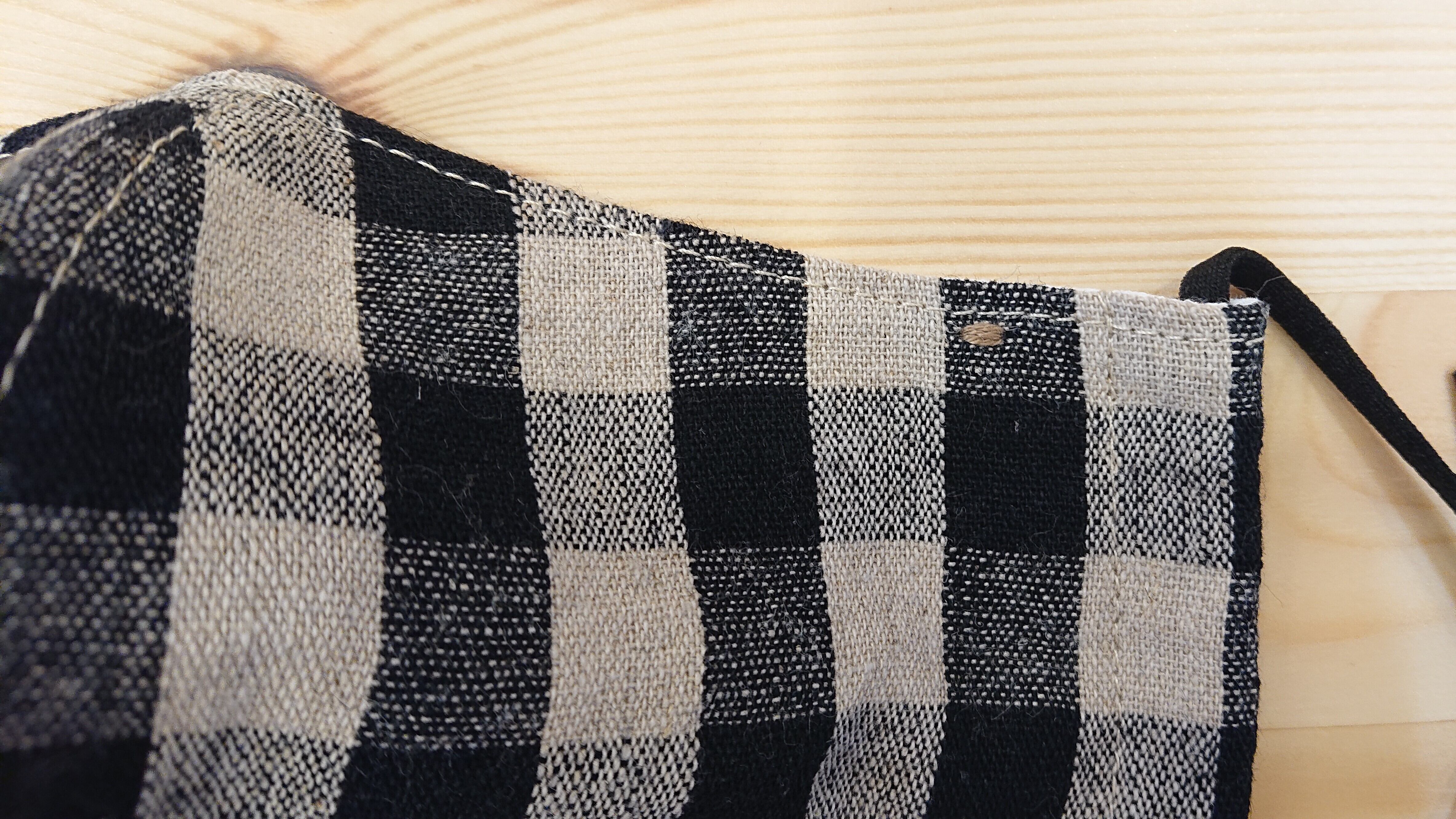 チェック柄のリネンマスク 大きいチェック 黒 ~ジュニアサイズ~ 交換用のゴム紐プレゼント
