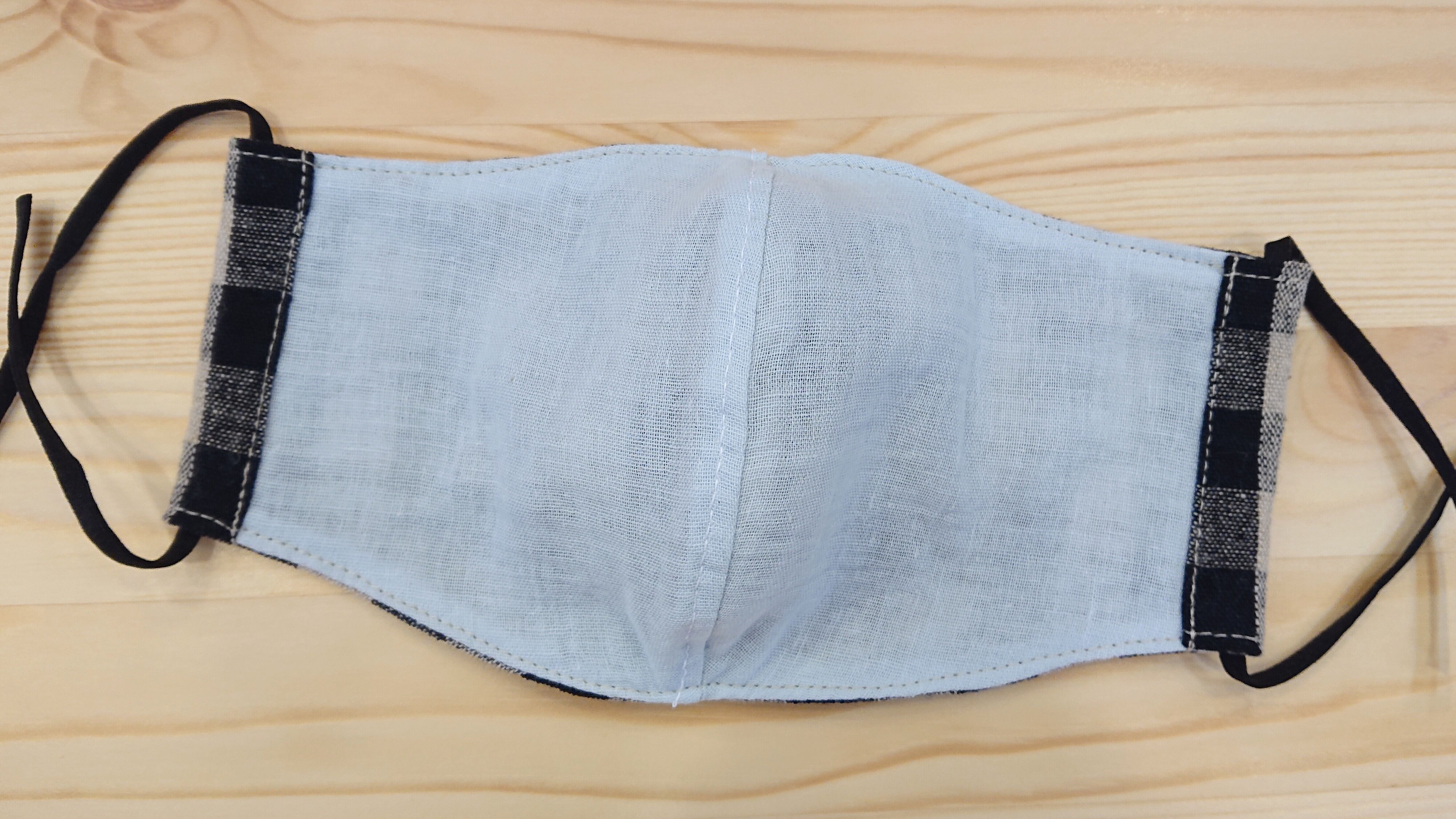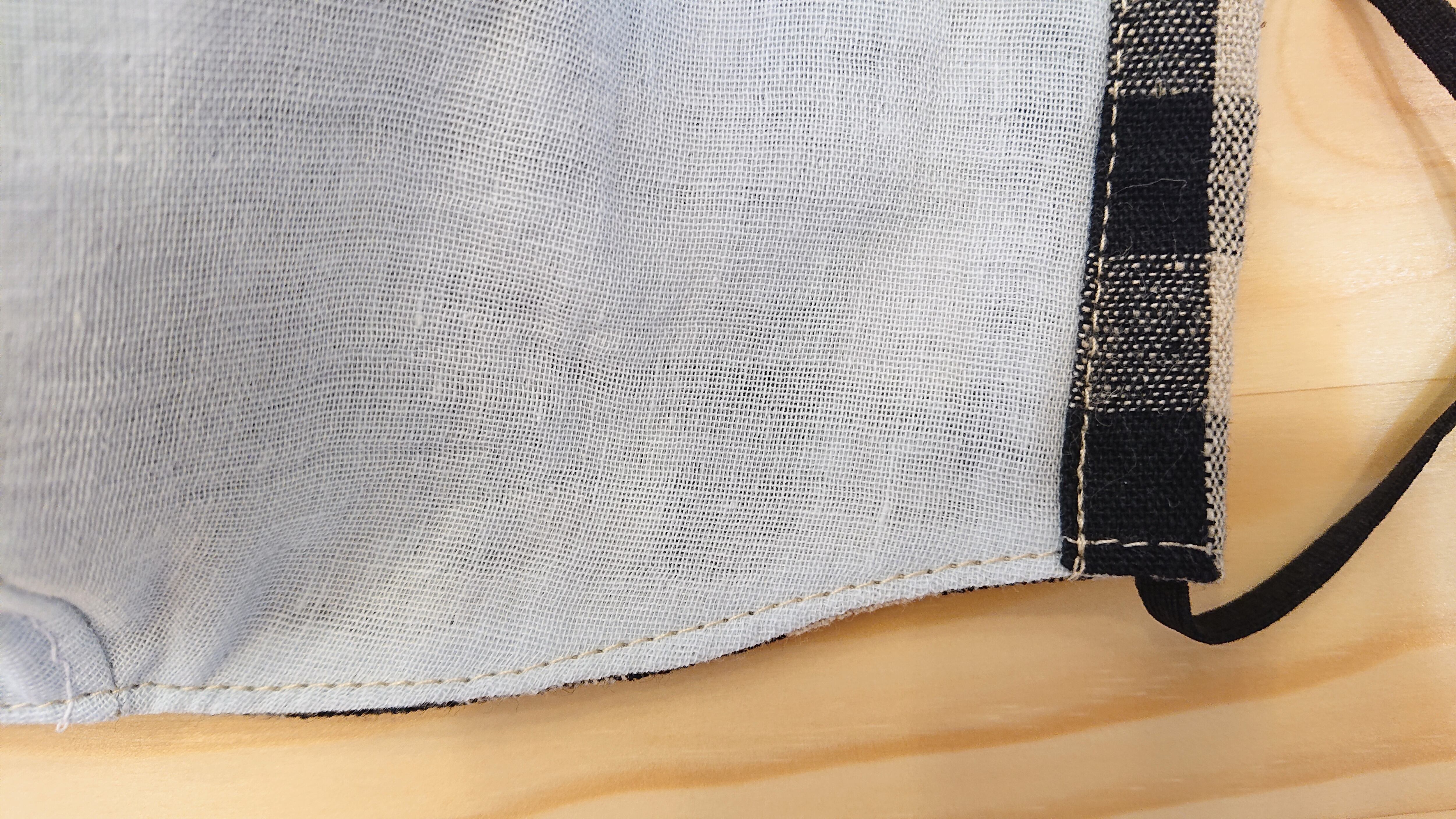 チェック柄のリネンマスク 大きいチェック 黒 ~メンズ・レディースサイズ~ 交換用のゴム紐プレゼント