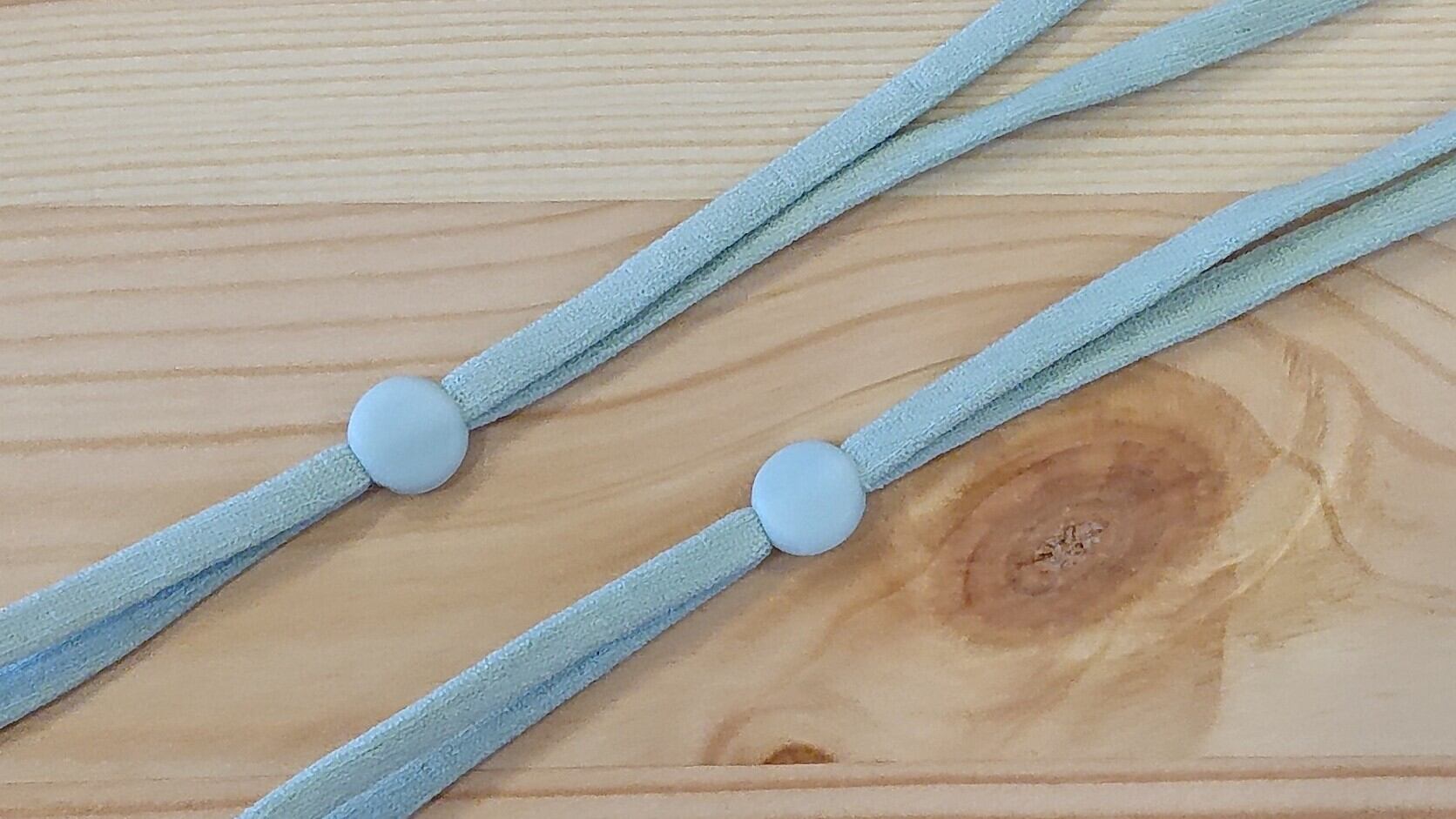 50cmのマスク用のゴム紐にシリコンストッパーを付けています。左右に付ける、2本セットのお届けになります。