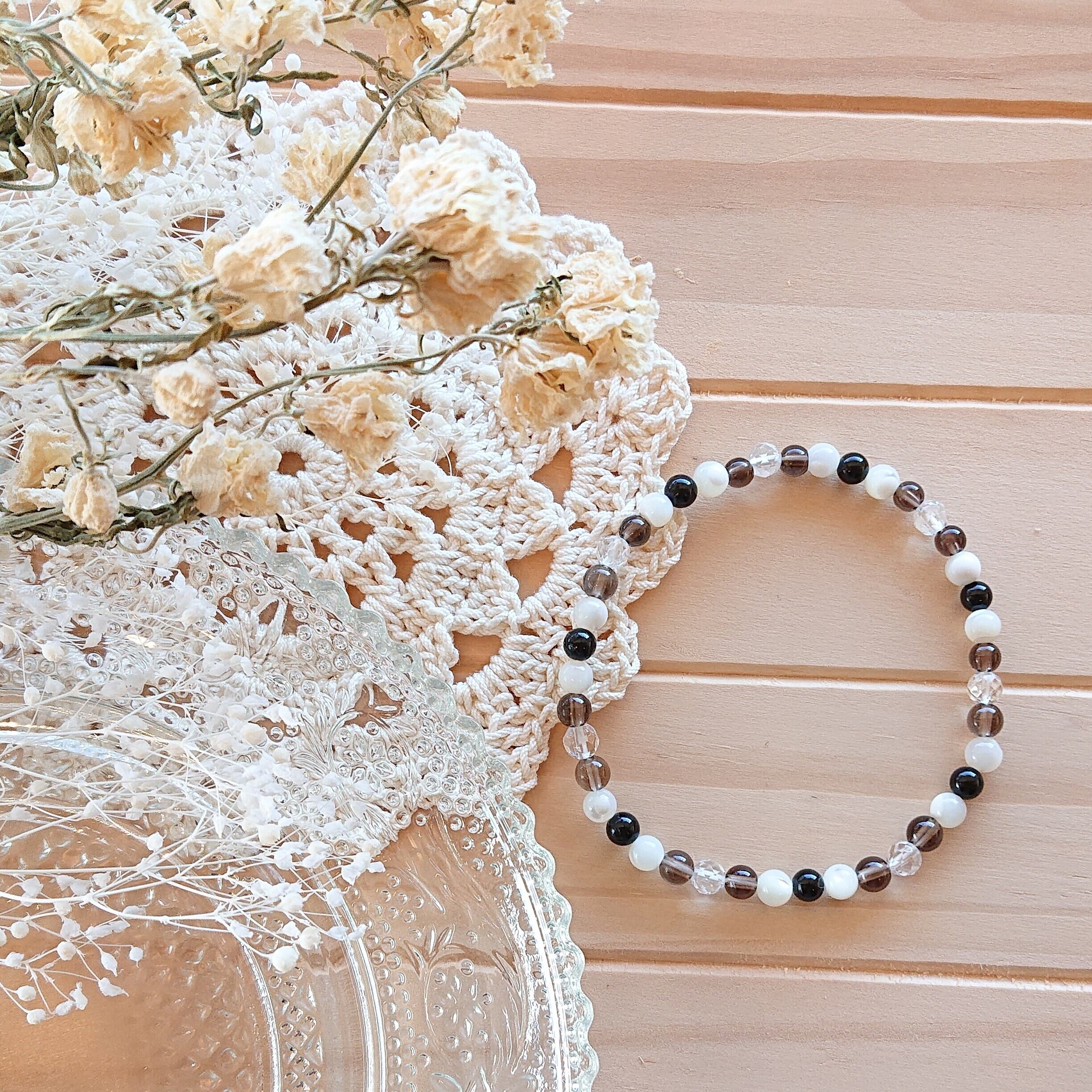 天然石のブレスレット ~オニキス・スモーキークォーツ・マザーオブパール・水晶~