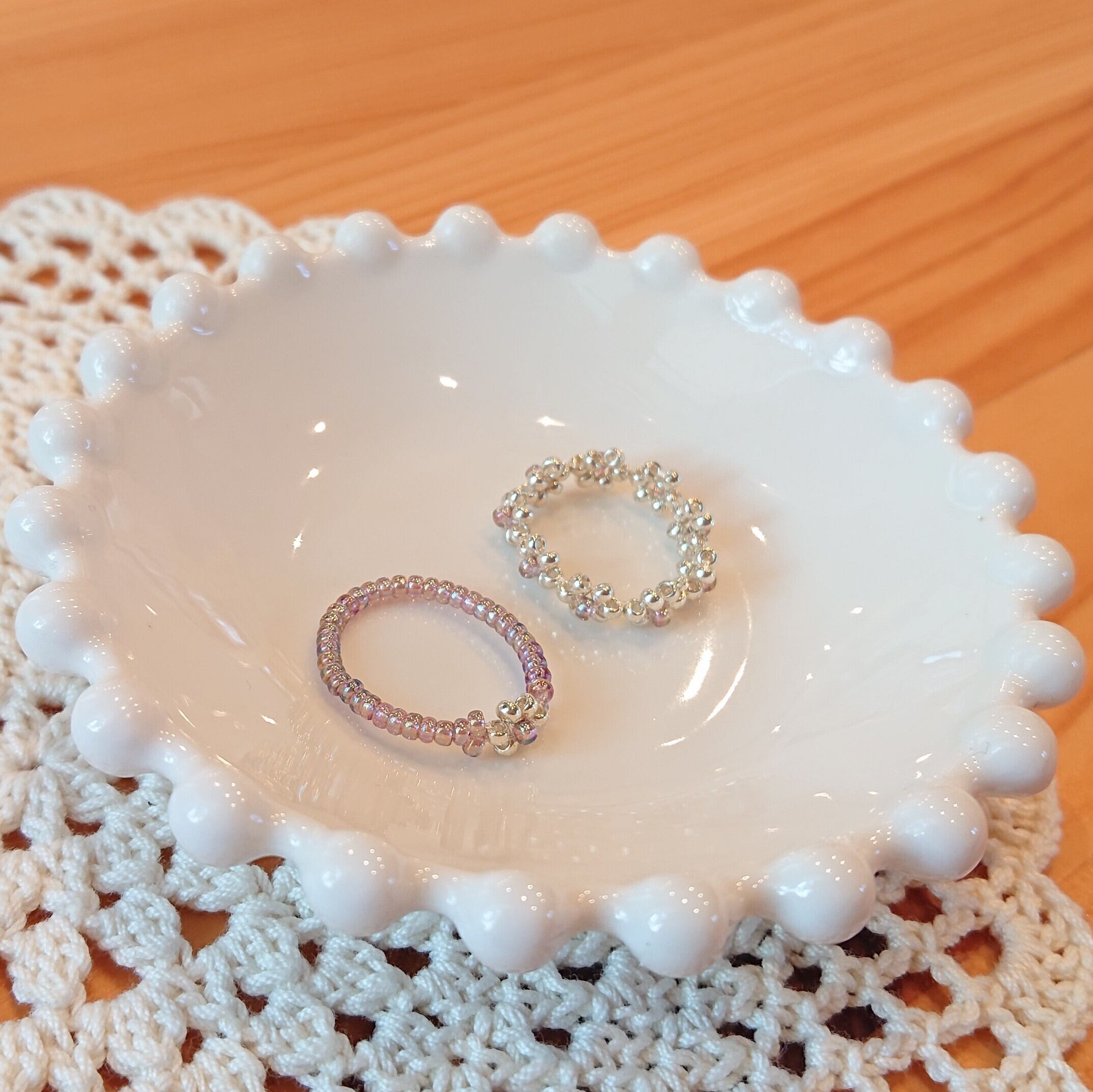 お花1つ のリングと お花一連のリングの重ねづけがオススメです。