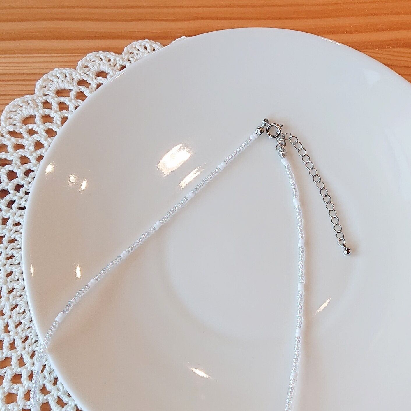 ビーズのネックレス ~クリアオーロラ × ホワイト~